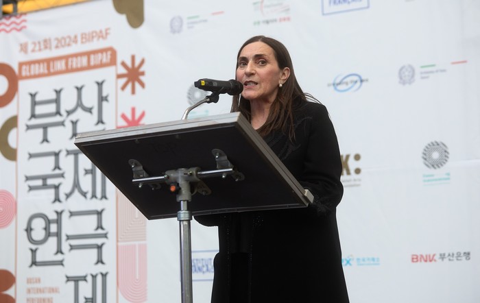 ▲ 2024년 제21회 부산국제연극제 개막식에서 축하말을 하고 있는 주빈국 이탈리아, 주한 이탈리아문화원장 (제공: 부산국제연극제) ©김중건