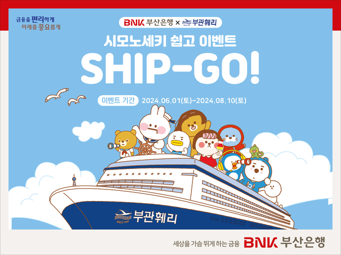 BNK부산은행(은행장 방성빈)은 오는 8월 10일(토)까지 부산은행 환전 고객을 대상으로 ‘시모노세키 쉽고(SHIP-GO)! 이벤트’를 실시한다고 5일 밝혔다.