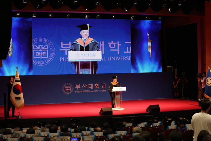 최재원 부산대 신임 총장은 이날 취임사를 통해 “저와 함께 부산대학교가 있다는 자부심과, 많은 분들의 뜨거운 성원이 있다는 믿음을 가지고 제게 주어진 소중한 책무를 흔들림 없이 성실히 감당해 나갈 것을 약속드린다”며 포부를 밝혔다.