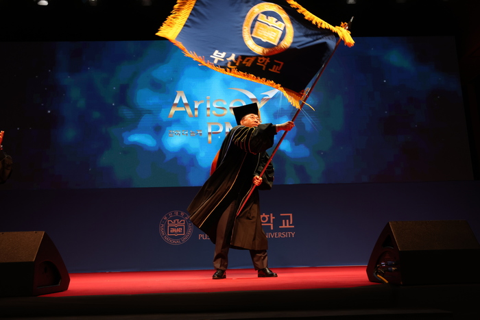 행사는 총장 약력 소개, PNU(부산대) 교기 인계, 총장 취임사, 축사, 축가 순으로 진행됐으며, ‘Arise PNU, 같이 더 높게’라는 신임 총장의 슬로건과 비전 영상을 선보였다.