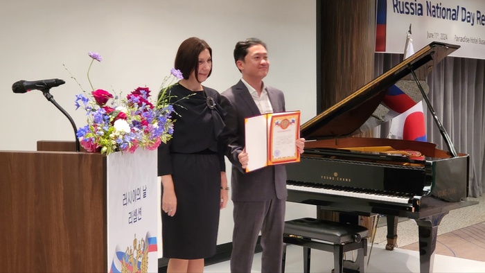 러시아 피아니스트의 피아노와 한국 출신 성악가의 연주로 러시아의날 리셉션을 축하했다.