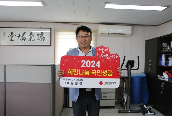 주식회사 수기산업개발(양산시 동면 소재) 설찬진 대표이사는 지난 6월 11일 대한적십자사 부산지사에 어려운 이웃들을 위해 써달라며 적십자 이웃돕기성금 500만원을 기탁했다.