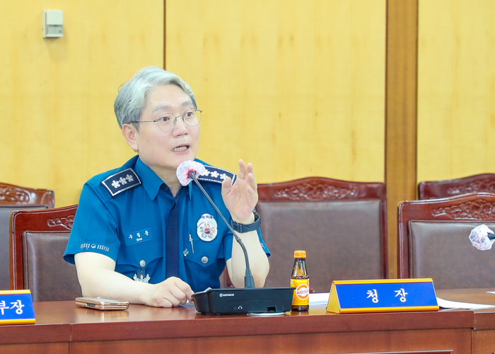 ▲ 우철문 부산경찰청장이 해수욕장 전면개방 치안대책 보고회에서 여름파출소 운영 등에 만전을 기할 것을 당부하고 있다 / 부산경찰청 © 김중건
