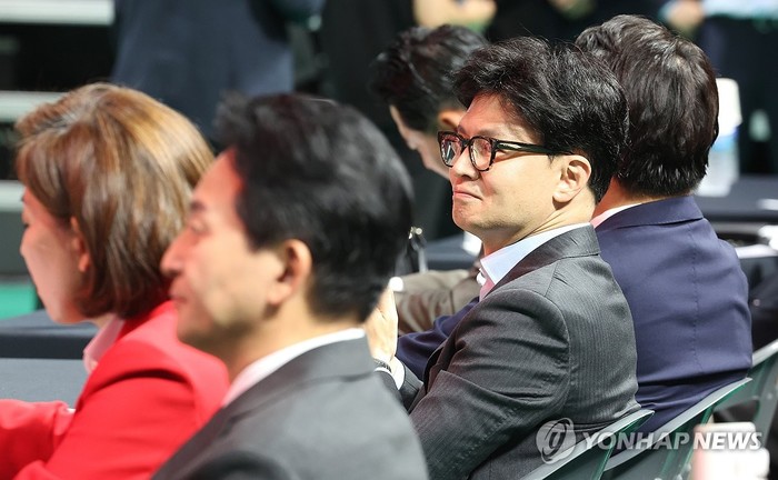 ▲ 국민의힘 한동훈, 원희룡 당 대표 후보가 17일 오후 경기 고양시 고양 소노 아레나에서 열린 제4차 전당대회, 서울 인천 경기 강원 합동연설회에 입장해 자리하고 있다. (출처 = 연합뉴스) ©