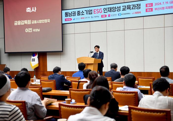 BNK금융그룹(회장 빈대인)은 19일 부산시청 12층 국제회의장에서 금융감독원과 함께 ‘동남권 중소기업 ESG 인재양성 교육’을 실시했다고 밝혔다. 이 자리에는 부울경지역 중소기업 임직원 등 150여 명이 참석했다.