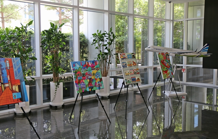 ▲ 에어부산 사옥에 전시된 발달장애인 예술단 브릿지온 아르떼 미술작품 © 김중건