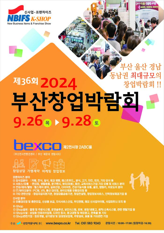 지난 24년간 국내 창업시장의 활성화와 프랜차이즈 교류의 장이 된 ‘부산창업박람회’가 오는 9월 26일부터 28일까지 3일간 부산 벡스코(BEXCO)에서 개최된다.