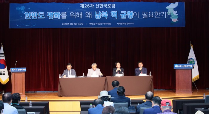 UPF(Universal Peace Federation, 세계평화연합, 세계의장 양창식)는 세종연구소 정성장 한반도전략센터장을 초청한 가운데 ‘한반도 평화를 위해 왜 남북 핵 균형이 필요한가’라는 주제로 ‘제26차 신한국포럼’을 8월 9일 백범김구기념관 대회의실에서 진행했다.