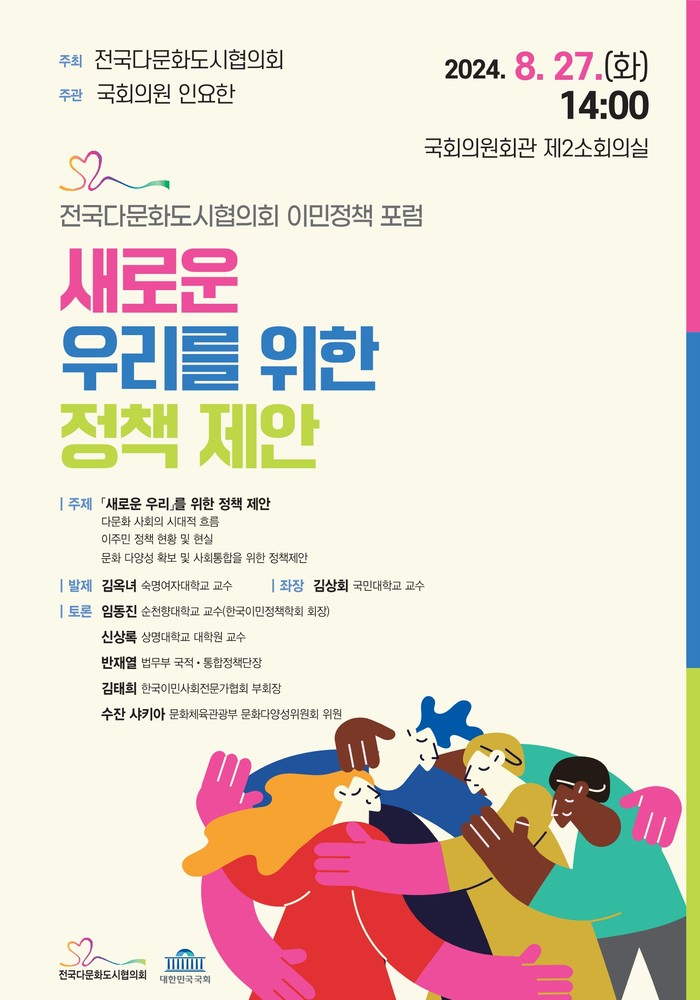 전국다문화도시협의회, 27일 이민정책 포럼 개최한다- 8월 27일 여의도 국회의원회관 제2소회의실에서