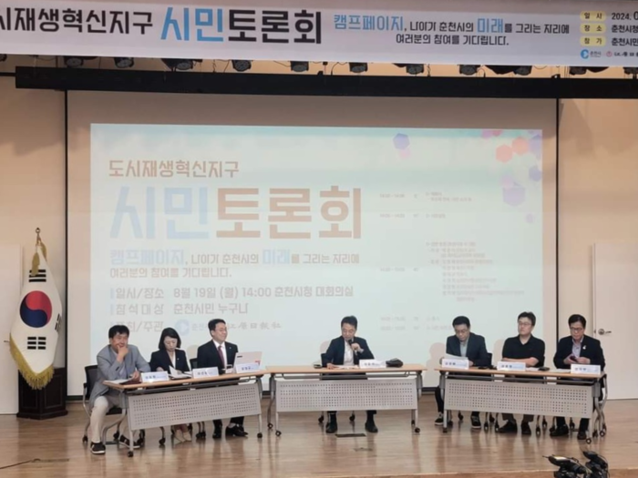 이와 관련, 19일 오후 춘천시청 대회의실에서 캠프페이지 도시재생혁신지구 사업을 둘러싼 시민토론회를 갖고, 쟁점에 대한 치열한 공방을 펼쳤다.
