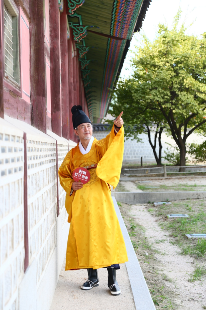 한복세계화포럼은 18일 오후 흥례문에서 시민과 함께 한복입기 운동을 개최하였다.