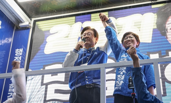 ![]() ▲ 이재명 민주당 대표와 김경지 부산 금정구청장 후보. (출처 =민주당) |