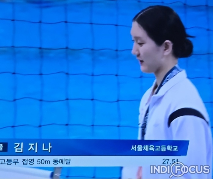12일 경남 창원에서 열린 105회 전국체전에서 서울체육고등학교 1학년 김지나가 접영 50m에서 동메달을 획득했다.