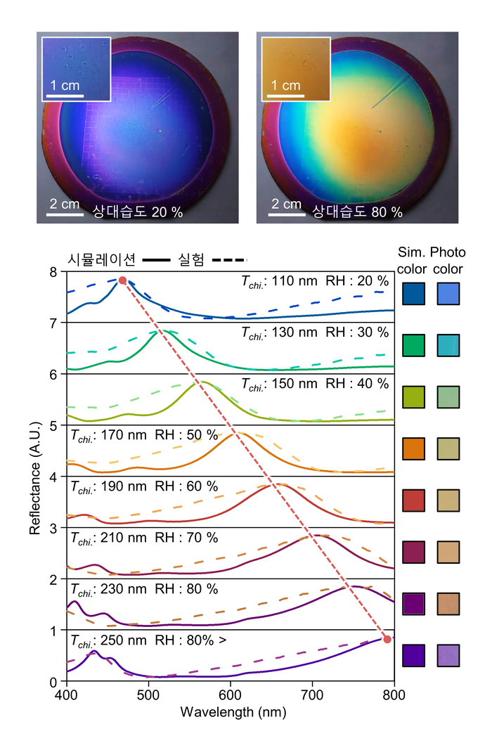 부산대학교(총장 최재원) 전기전자공학부 전자공학과 이길주 교수 연구팀은 광주과학기술원 전기전자컴퓨터공학부 송영민 교수팀과 나노종합기술원 강일석 박사팀과의 공동 연구를 통해, 습도에 따라 색상이 변하는 구조색 기반 고(高)반응성, 고(高)색재현율 구조색 기반 습도 센서 개발에 성공했다고 15일 밝혔다.