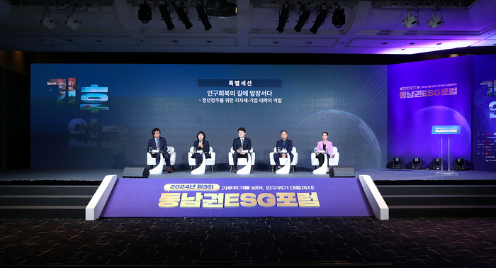 ‘기후위기를 넘어, 인구위기 대응까지’ 주제로 열린 포럼은 부산·울산·경남 등 동남권 기업들과 ESG 분야 전문가들이 함께 자리해 지속가능한 발전을 논의하고, 저출산 및 고령화 문제를 ESG경영의 틀에서 새롭게 조망해 보는 장이 됐다.