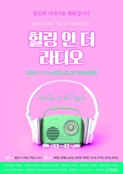 ‘힐링 인 더 라디오’ 시즌 5는 2024년 11월 14일 첫 공연을 시작으로 2025년 2월 2일까지 대학로 R&J씨어터에서 계속되며, 인터파크티켓, 네이버, 타임티켓에서 예매가 가능하다.
