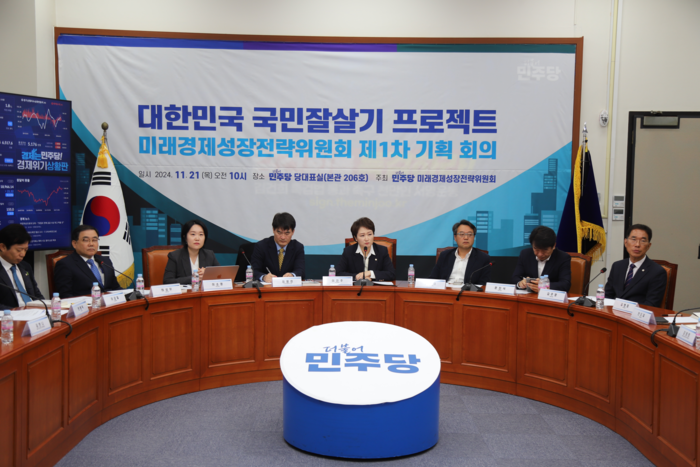 민주당은 21일 국회 본관 당대표실에서 미래경제성장전략위원회(위원장 이언주 국회의원, 이하 경제성장위) 제1차 기획 회의를 개최하고, “유리지갑 두텁게 하기”, “자본시장에서 부자되기” 등 중산층 부흥을 핵심으로 하는 ‘대한민국 국민 잘살기 프로젝트’ 진행을 논의했다.