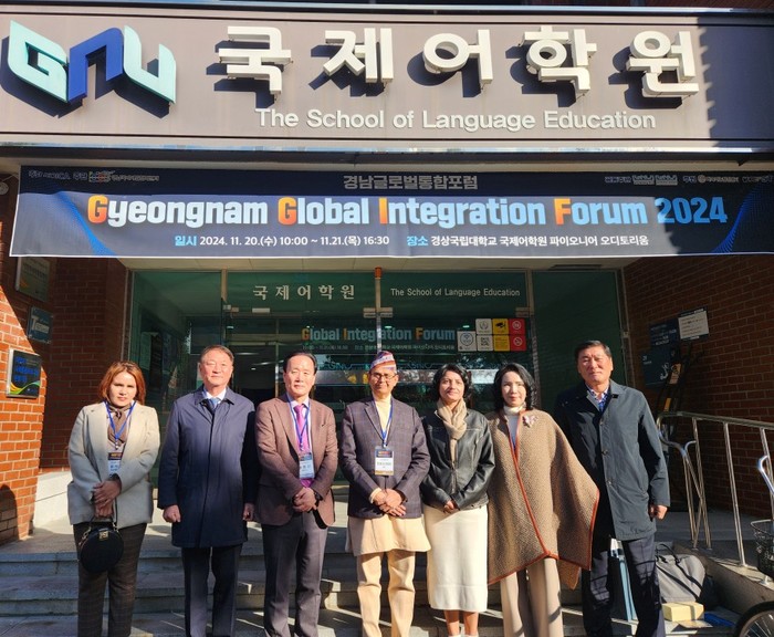 KOICA·경상국립대, 경남글로벌통합포럼 개최... 경남 지산학관민 협력 통한 글로벌 오픈 이노베이션 플랫폼 구축 주제주한 네팔 대사관 쁘스뻐 라즈 버떠라이 대리대사, KOICA-경상국립대 ODA 활성화·경남글로벌통합포럼 축사경상국립대학교 경남국제개발협력센터(센터장 김관영교수)는 20~21일 가좌캠퍼스 국제어학원에서 ‘경남 지산학관민 협력을 통한 글로벌 오픈 이노베이션 플랫폼 구축’ 주제로 ‘2024년 경남글로벌통합포럼’을 개최했다.