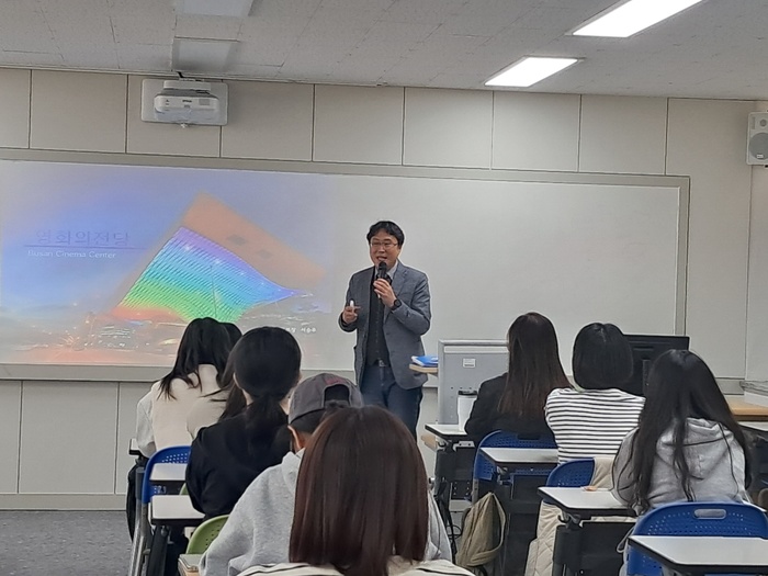 ▲ 서승우 영화의전당 본부장이 대학생들에게 영화의전당 프로그램 등을 소개하고 있다 © 김중건