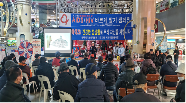 한국에이즈퇴치연맹 대구시 지회(박용철 회장)는 지난달 29일 반월당 지하 메트로센터 광장에서 시민 대상으로 '2024년 제37회 세계 에이즈의 날 기념 [에이즈, 바르게 알기] 캠페인 활동을 전개했다고 밝혔다.
