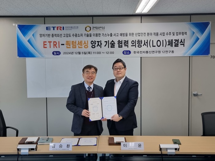 이날 협력의향서 체결식에는 퀀텀센싱 이윤 대표이사와 ETRI 디지털융합연구소 김승환 소장 등 양측 관계자 10여 명이 참석했다.
