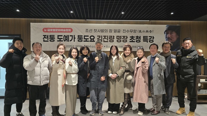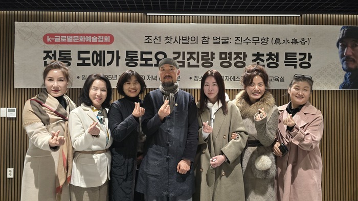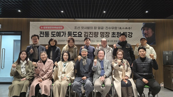 K-글로벌문화예술협회(이사장 박혜수)는 지난 9일 경북 경산에 위치한 ㈜모나리자에스엠 본사 2층 문화교육실에서 도예가 김진량 명장 초청 특강을 개최했다. 변지애 대표, 이준엽 디렉터에 이어 세 번째 특강으로 매월 첫 째주 목요일 저녁에 진행하고 있다.