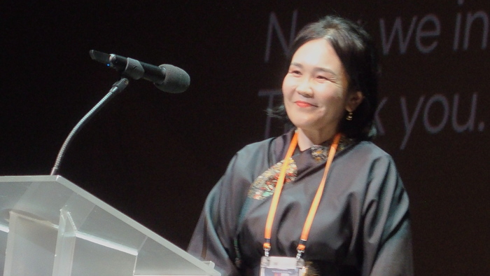 개막작인 영화 <호라이즌> 상영에 앞서 <호라이즌> 프로듀서 바야르자르갈 씨가 무대에 올라 개막작 소개를 했다.