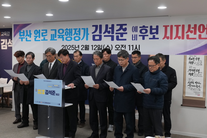 우리는 평생을 부산교육 발전과 교육행정의 최일선에서 헌신해 온 원로교육행정가로서, 이번에 치러지는 부산광역시교육감 재선거에서 김석준 예비후보를 강력히 지지할 것을 선언합니다.
