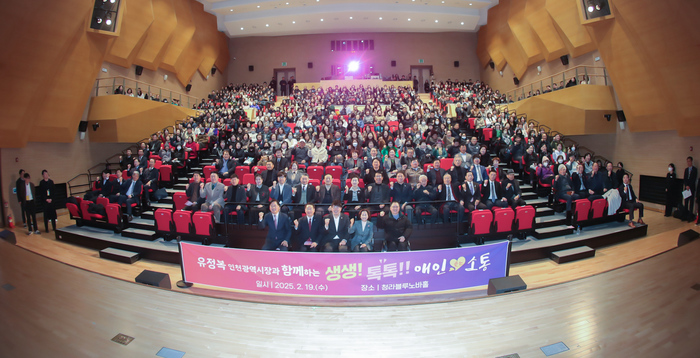 청라블루노바홀에서 열린 '생생톡톡 애인(愛仁) 소통'엔 유정복 시장과 강범석 서구청장을 비롯한 구의원, 시의원, 지역원로, 단체·주민 대표, 구민 등 500여명이 참석했다. 유 시장은 이 자리에서 올해 시정 운영 방향에 대한 설명과 질의응답 시간을 가졌다.