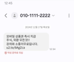 - 악성 문자로 표시된 문자의 99%가 실제 스팸 및 광고성 문자로 확인
