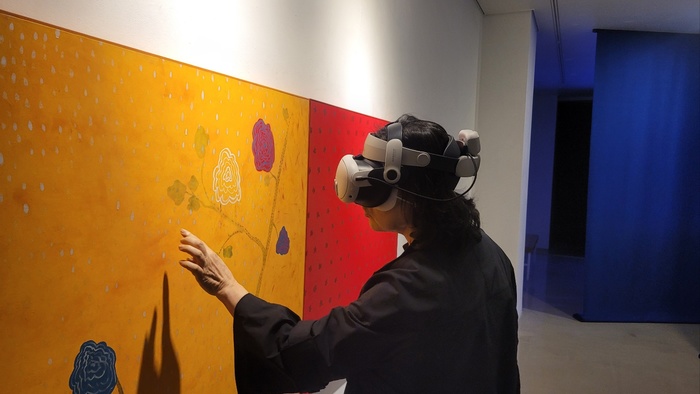 이번 전시에서는 VR 기술을 접목하여 한국화의 선적 표현을 가상 공간 속으로 확장했다. 먹의 번짐, 붓의 질감, 역동적인 선들이 관객을 몽환적인 세계로 이끄는 가운데, 푸른 색채와 긴 천의 오브제가 현실과 가상의 경계를 다시 정의합니다. MR 기반의 설치작품은 관람자의 움직임에 따라 다양한 각도에서 반응하며 새로운 감상의 방식을 제시한다.