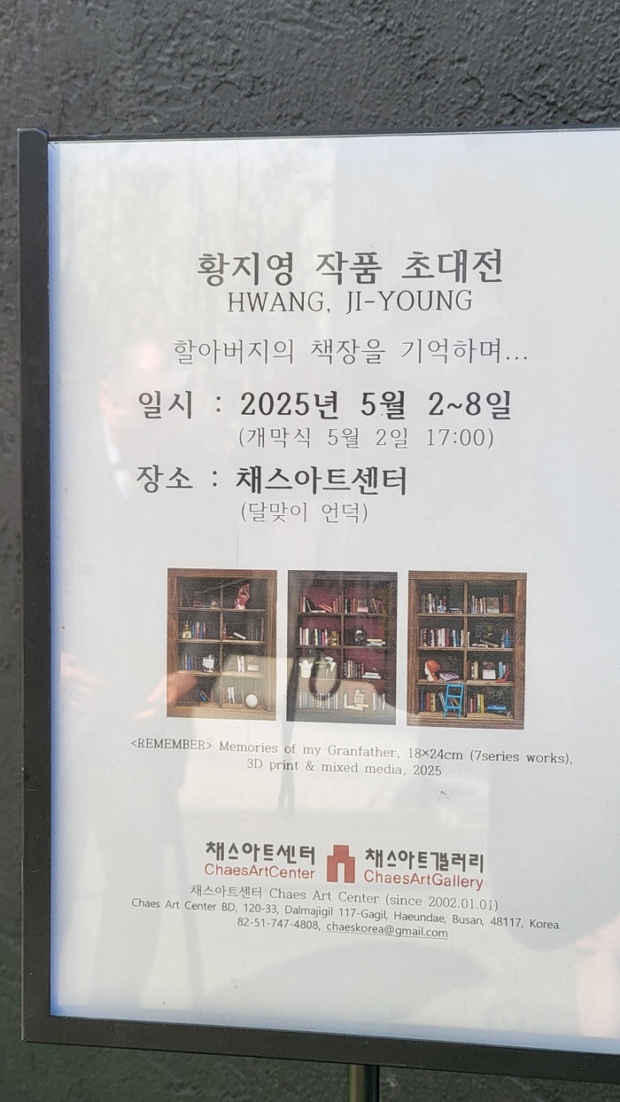 황지영 작가, 전통을 입체로 새기다… “책 속에서 시대를 기억합니다”부산 해운대 채스아트센터, 5월 2일부터 8일까지 초대 개인전 <할아버지의 책장을 기억하며> 전통과 현대, 동양과 서양을 넘나드는 ‘입체 책가도’의 독창적 미학전통 민화 장르인 ‘책가도’를 현대적으로 재해석하며 독창적인 작품 세계를 구축해온 황지영 작가가 지난 5월 2일부터 부산 해운대 채스아트센터에서 초대 개인전을 열고 있다.