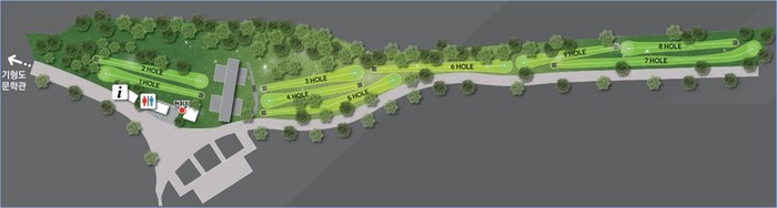 홀 전체 길이는 총 374m, 파(par) 33 기준으로 설계됐으며, 홀마다 난이도와 거리를 다양하게 구성해 재미와 도전 요소를 함께 갖췄다.