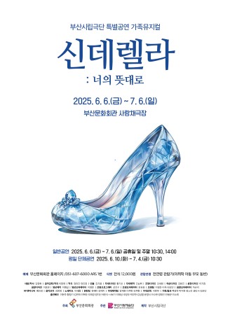 부산시립극단(예술감독 김지용)은 특별공연으로 가족 뮤지컬 <신데렐라 : 너의 뜻대로>를 오는 6월 6일(금)부터 7월 6일(일)사이 공휴일과 주말에 부산문화회관 사랑채극장에서 선보인다.