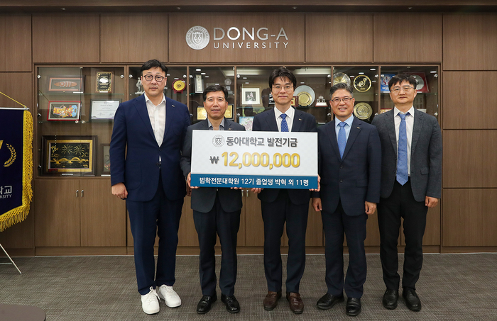 동아대학교(총장 이해우)는 법학전문대학원(로스쿨) 12기 졸업생들이 발전기금 1,200만 원을 기부했다고 밝혔다.