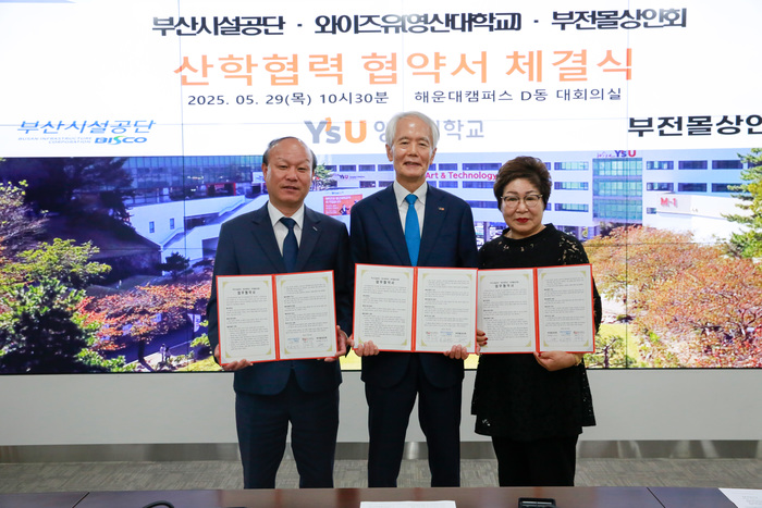 와이즈유 영산대학교(총장 부구욱)는 지난 29일 해운대캠퍼스 대회의실에서 부산시설공단 및 부전몰상인회와 3개 기관 업무협약을 체결했다.
