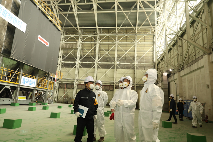 ▲ 김성훈인천환경공단이사장과 직원들이 송도자원순환시설 집진시설을 점검하고 있다. [사진=인천환경공단] © 인디포커스