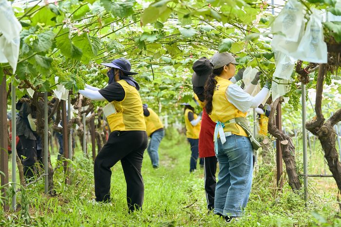 또한, 임직원 봉사단은 같은 날 신도 포도농가 세 곳을 방문해 본격적인 포도 수확철에 앞서 인력 부족으로 어려움을 겪고 있는 지역 농가에 일손을 보탰다. 특히, 인스파이어는 시그니처 레스토랑 등 리조트 내 식음 업장에서 지역 농산물을 적극 활용하고 있어, 이번 활동을 통해 지역 농가와의 교류를 확장하고 더욱 견고한 지역사회 농산물 생산 기반 조성에도 일조할 계획이다.