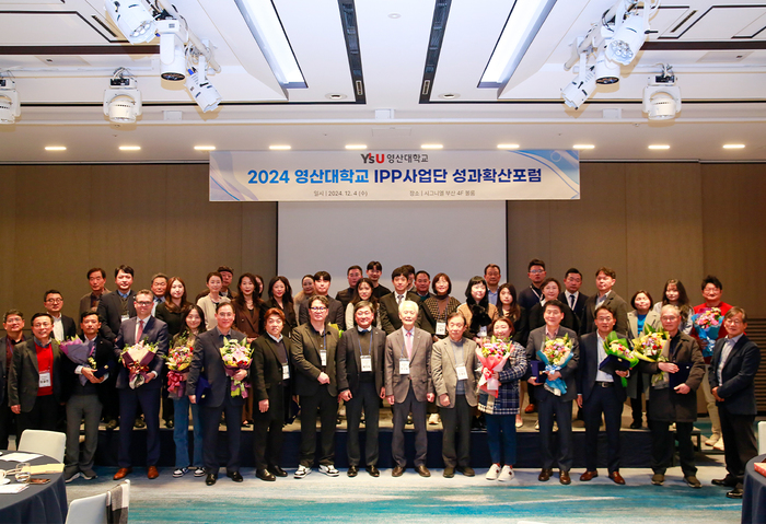 ▲ 와이즈유 영산대학교가 IPP사업단 성과확산포럼을 개최하고 기념촬영을 하고 있다. ©김중건