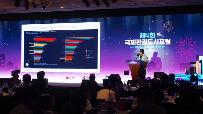 '2025제4회 국제관광도시포럼'이 20일 오후 2시 부산시 해운대구 웨스턴조선 부산 그랜드볼룸에서 열렸다. 국제적 도시 간 협력과 신시장 개척을 중심으로 부산 관광 미래비전을 논의하는 자리로 매김했다.