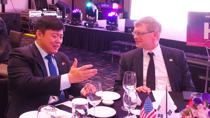 ▲ 환담을 나누고 있는 우리비 주부산중국총영사관 부총영사(오른쪽)와 듀이 무어 주부산미국영사관 수석영사 © 김중건