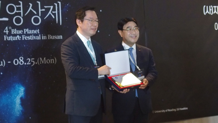 개막식에 앞서 리셉션 장에서 영상제 개최에 공이 많은 방성빈 BNK부산은행장에게 감사패를 전달했다.