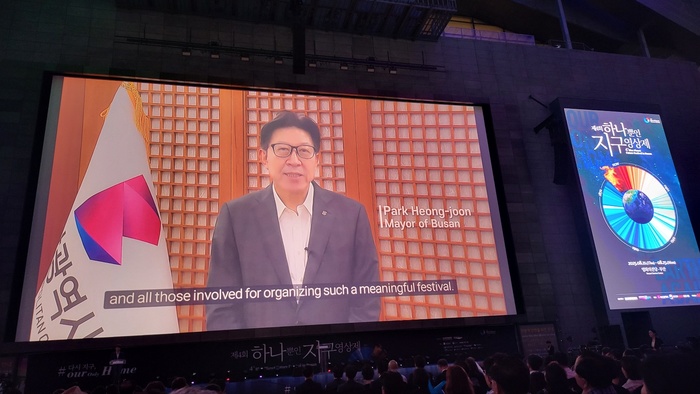 박형준 부산시장의 축하영상 상영에 이어 영상제 명예 홍보대사인 환경실천가 배우 박진희 씨가 '지구를 위한 10분'이라는 제목의 개막 강연을 했다.