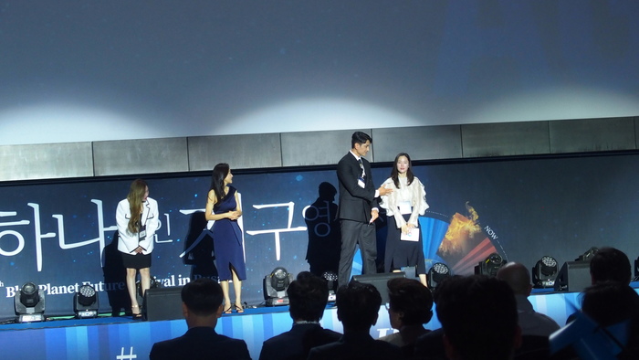 그는 "저는 이타적인 사람이 아니다. 두 아이를 지키고 싶은 엄마의 마음이다. 일회용품 안쓰기. 다회용기 사용하기, 플로깅 실천 등을 하게 됐다. 제인 구달 박사님께서 하신 말씀 중에서 '희망은 행동에서 온다'는 말씀이 있다. 우리가 무엇을 잘 실천하거나 행동을 했을 때 어떤 뱐화가 올지는 아무도 알 수가 없다. 하지만 아무 것도 실천하지 않으면 아무것도 변하지 않는다. 누군가는 너무 늦었다고 이야기 한다. 하지만 저는 정말 끝날 때까지 끝난 것이 아니라고 믿는다. 우리가 지금 이자리에서 단순한 작은 약속이, 그리고 앞으로 시작될 작은 실천들이 미래를 바꿀 수 있다고 생각한다"고 환경 실천을 강조했다.