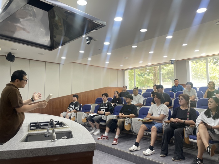 ▲ 양종집 교수가 방문해 K-푸드조리전공 재학생들을 위한 특별 강연을 진행하고있다. © 김중건