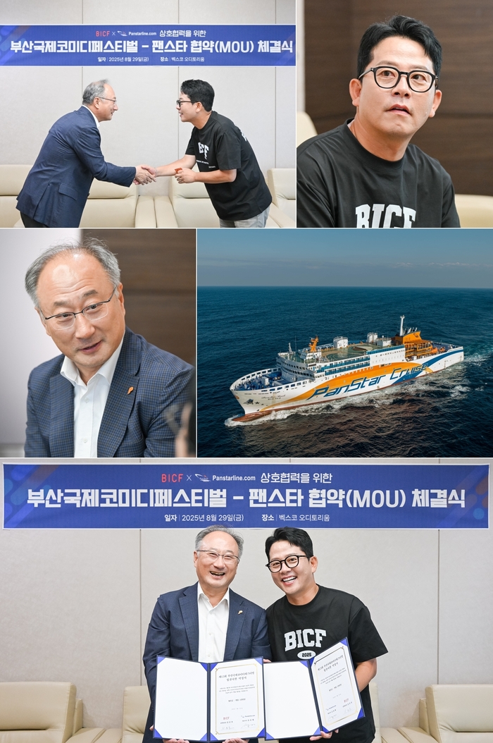 부산국제코미디페스티벌조직위원회(집행위원장 김준호)는 지난 8월 29일(금) 벡스코 오디토리움에서 팬스타라인닷컴(대표이사 김종태)과 업무협약(MOU)을 체결하고, 문화관광 콘텐츠 교류 및 상호 협력 강화를 위한 본격적인 파트너십을 구축했다.