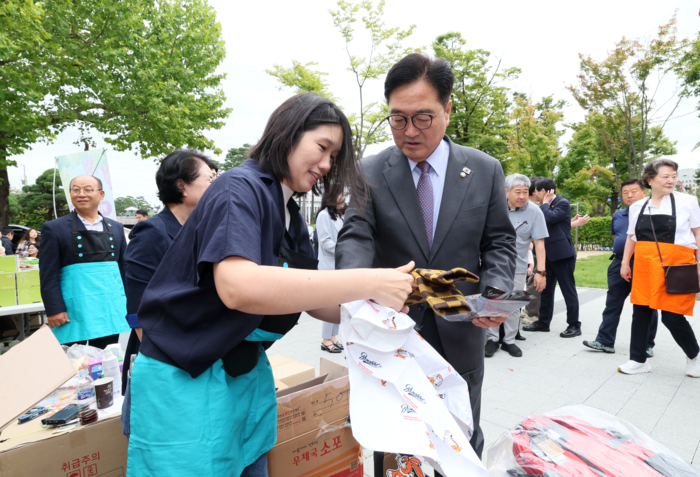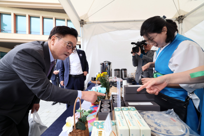 우원식 국회의장은 19일 오전 국회소통관 앞마당에서 열린 '2025 김근태재단 희망바자회'에 참석했다.