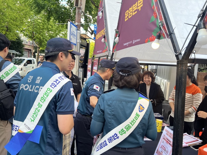 ▲ 부산진경찰서는 전포카페거리에서 열린 전포커피축제장에서 관련기관과 합동으로 질서 유지 캠페인을 벌였다/부산진경찰서 ©김중건