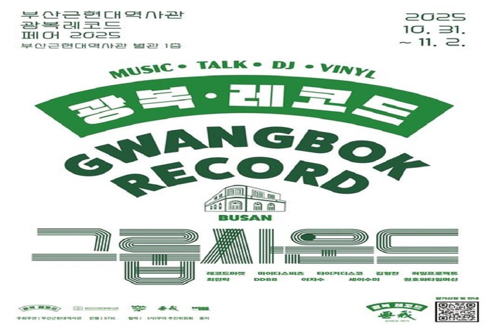 부산근현대역사관은 오는 10월 31일부터 11월 2일까지 별관 1층에서 부산 유일의 레코드 주제 행사인 「2025 광복레코드페어」를 개최한다고 밝혔다.