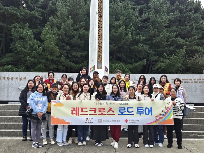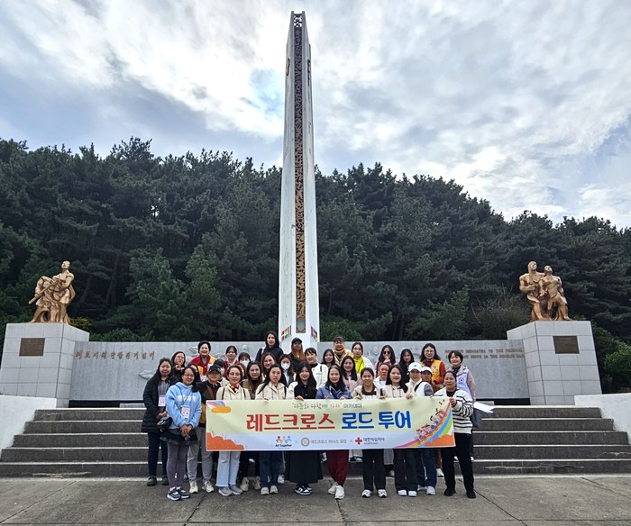▲ “결혼이주여성과 적십자 봉사원이 함께 적십자 유적지 탐방을 기념하는 모습”-2025. 11. 13.(목) UN의료지원단 참전기념비/.대한적십자사 부산지사 © 김중건